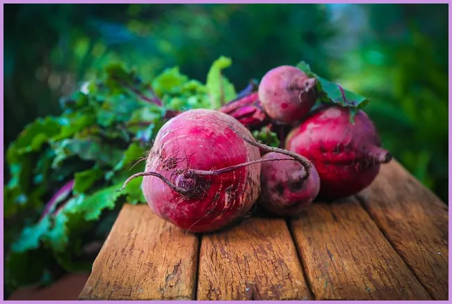 비트에는 여러 가지 유용한 성분이 포함되어 있습니다. 베타인은 비트의 대표적인 성분으로, 매우 강력한 항산화 작용을 합니다. 이 외에도 비타민 C, 칼슘, 철분 등 다양한 영양소가 들어 있어, 건강을 유지하는 데 많은 도움이 됩니다.