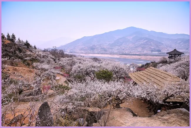 광양은 아름다운 자연경관이 특징입니다. 다양한 산과 계곡이 있어 하이킹을 즐기기에 좋은 장소들이 많습니다. 특히 매화꽃과 조화를 이루는 움푹 파인 계곡은 필수 방문 코스입니다.